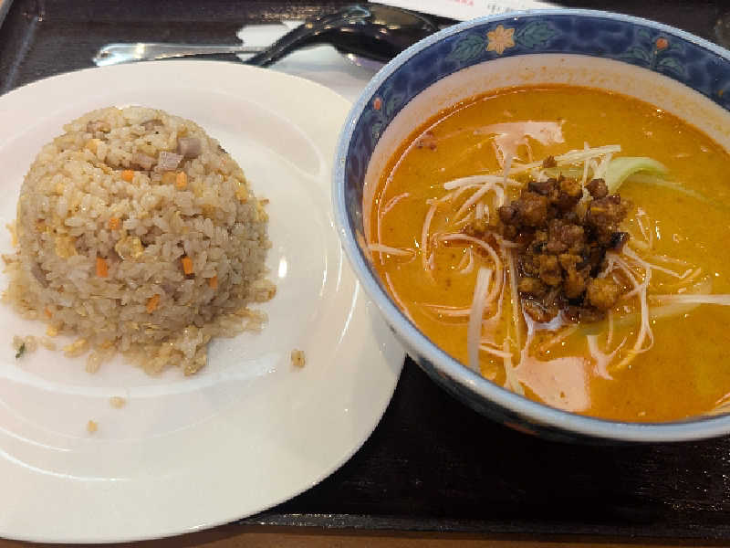 温浴施設とは思えない本格的な刀削麺🍜 モチモチの刀削麺に香り高いピリッとしたスープが良く絡み美味!