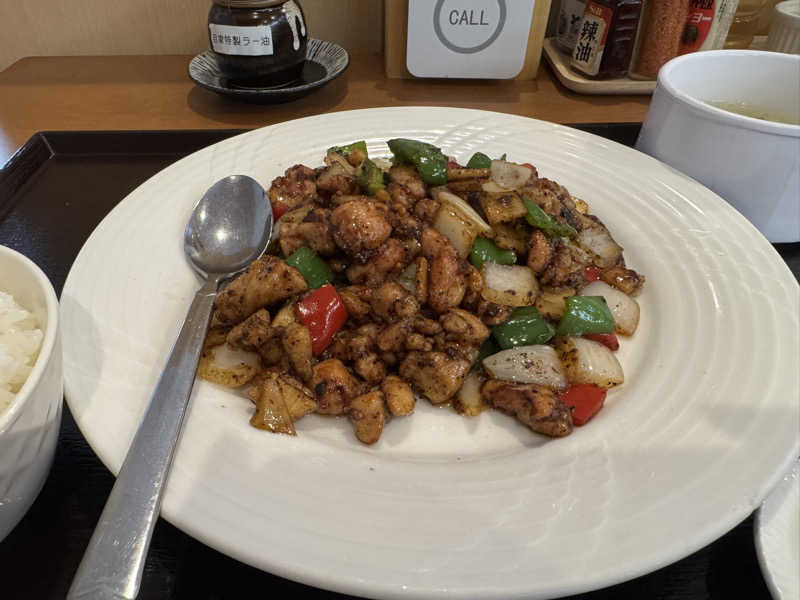 安定のうまさ。昼間から今日はレバニラと決めていました。各テーブルに置いてある自家製ラー油が美味しい。