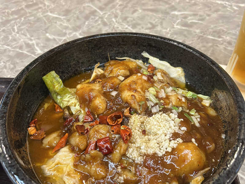 サ飯は施設内のレストラン[宝]見た目ほど辛くは無いが美味い、量もしっかりある、具の種類が多い、満足😊
