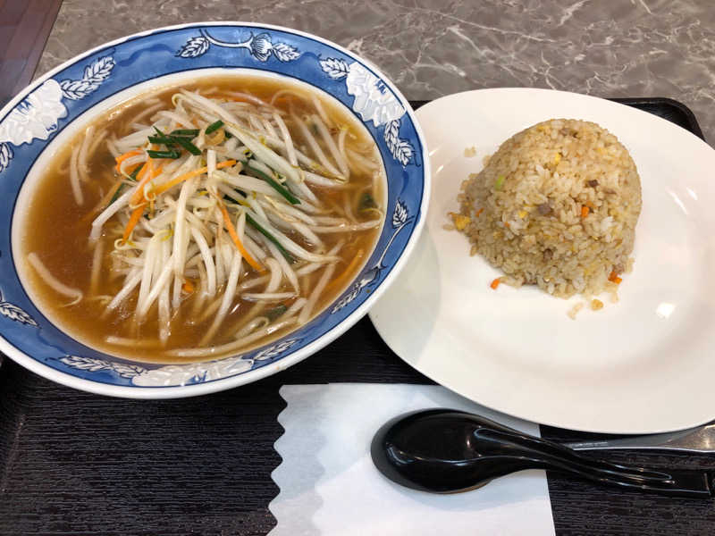 宝のラーメンはレベル高い!もやし炒めにしっかり味がついていて美味しかったです!半炒飯は量が多い!