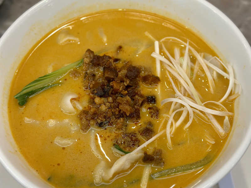 かなりマイルドで食べやすい 麺がモチモチで美味しい 卓上の自家製辣油をトッピングすると🙆♂️