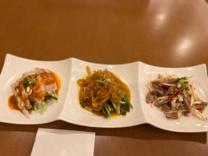 2.豚タンの冷菜5.キクラゲの黒酢加え8.バンバンジー