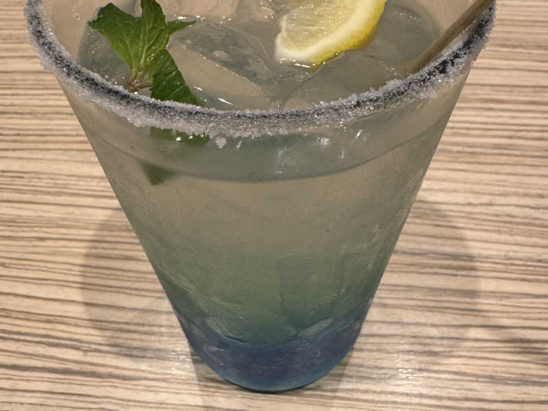 しょっぱーい!あま〜い!!サウナ後では、コップの淵の潮が染み込んできます