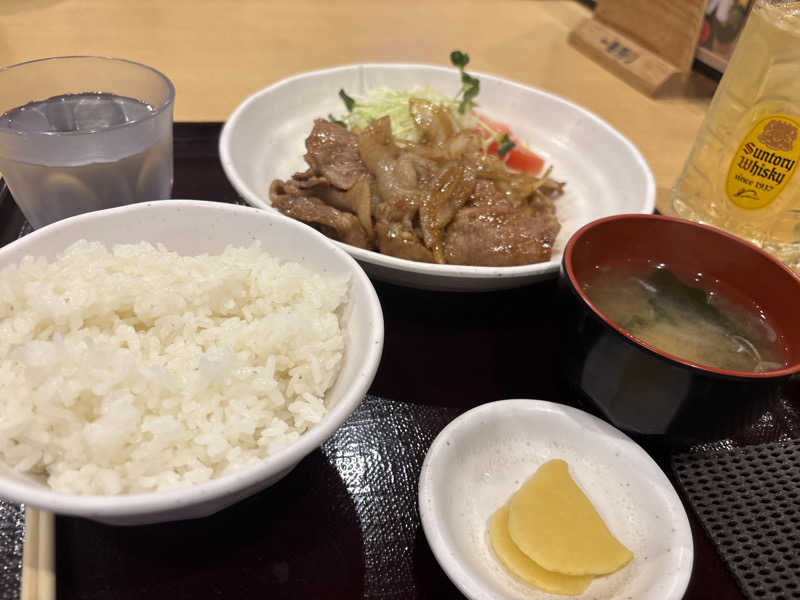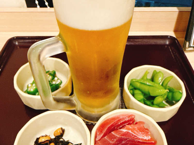 ビール🍺進んじゃう。揚げナスと温玉付きが嬉しい☺️