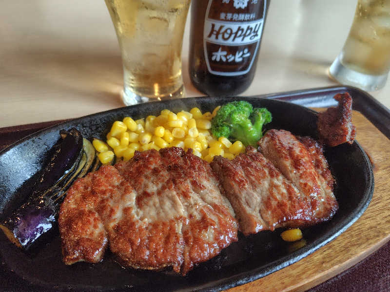 安いのに柔らかいステーキがお。ステーキソース美味いがお。ご飯は芽ぐみ米に変更したから健康がお。