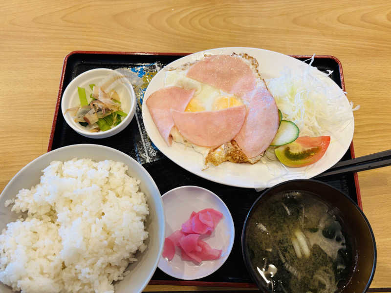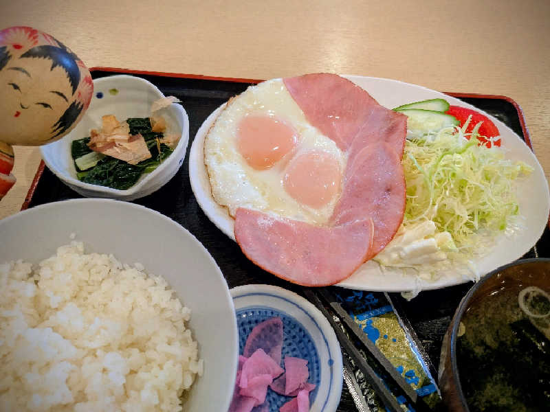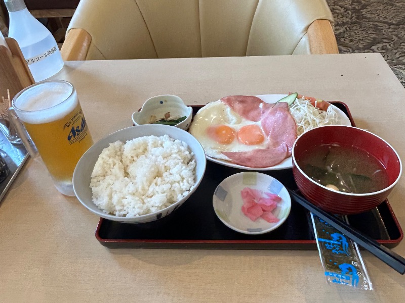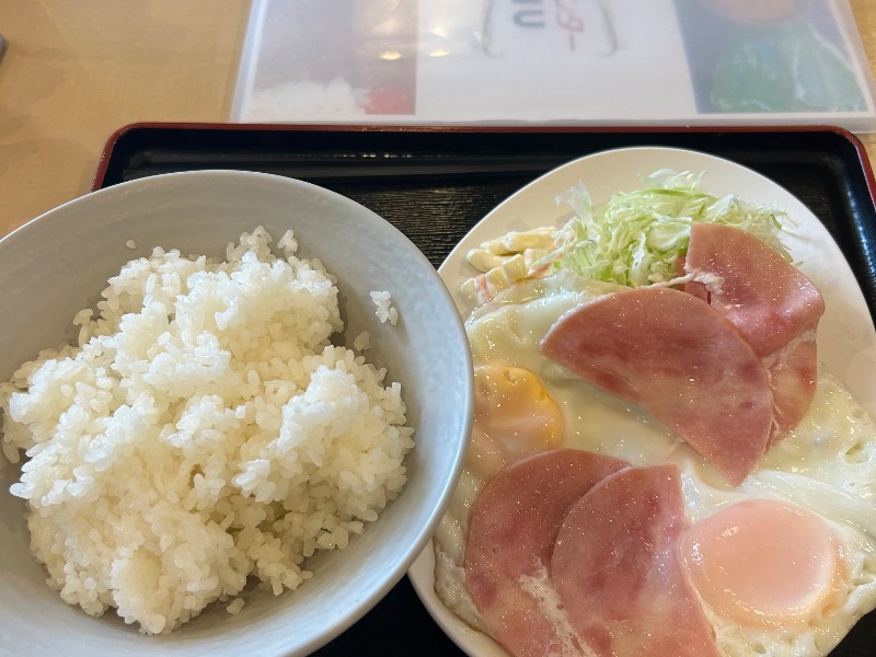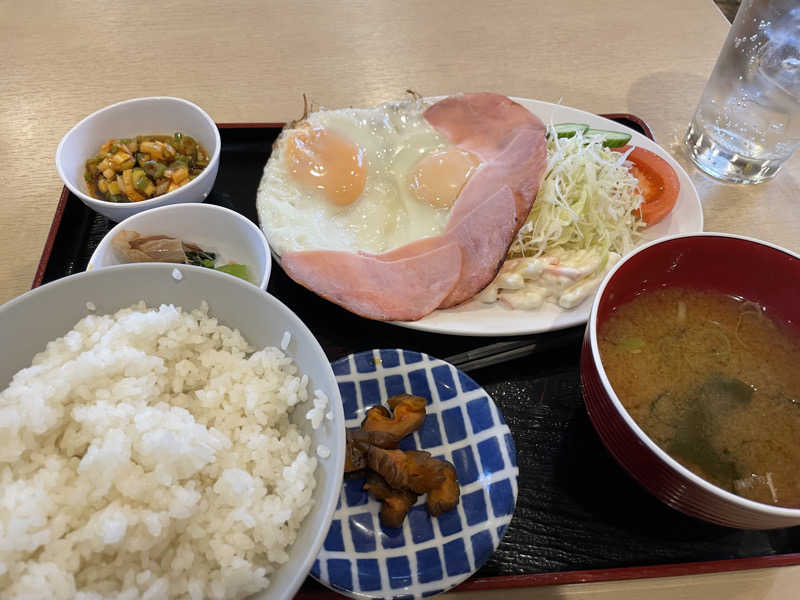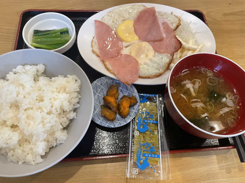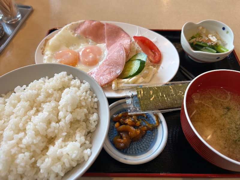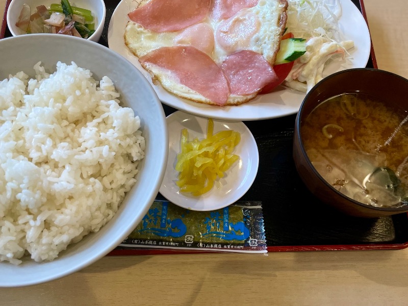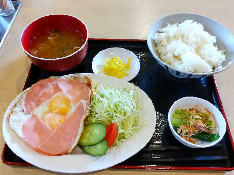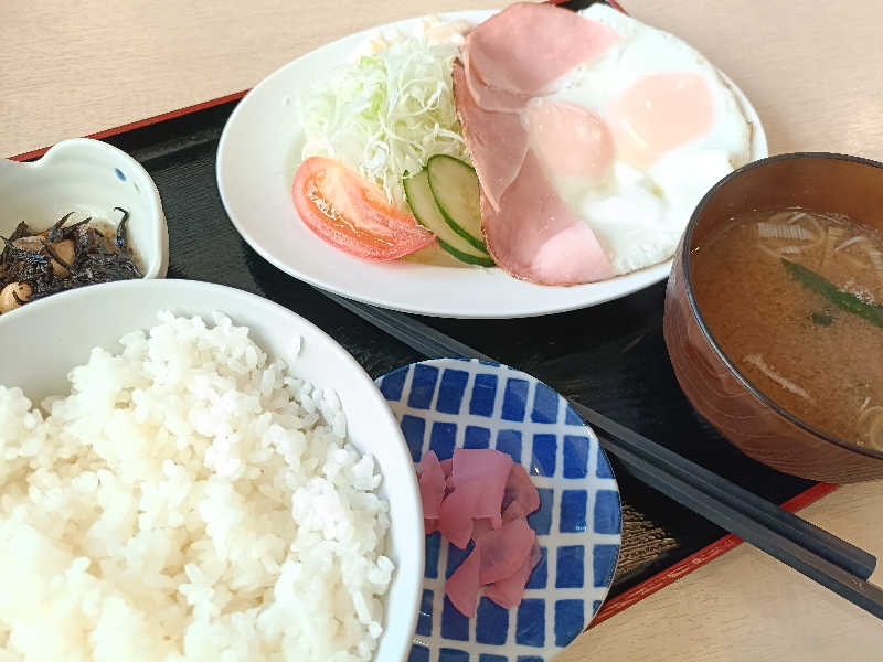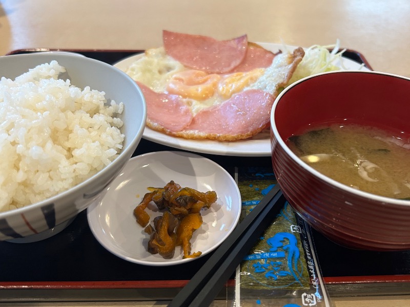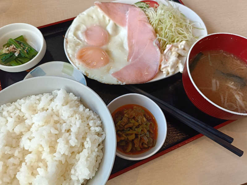 サウナセンターさんのもう1つの名物。こういうチカラ飯みたいな朝食は好きである😀