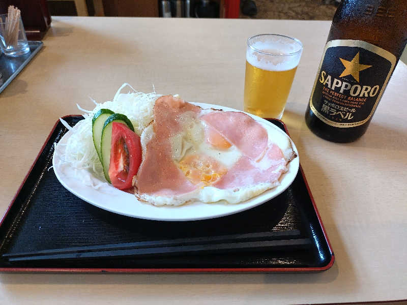 モーニングはお得。風呂の日でもらったドリンクチケットでのタダ生ビールも添えて。