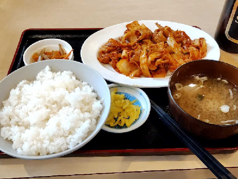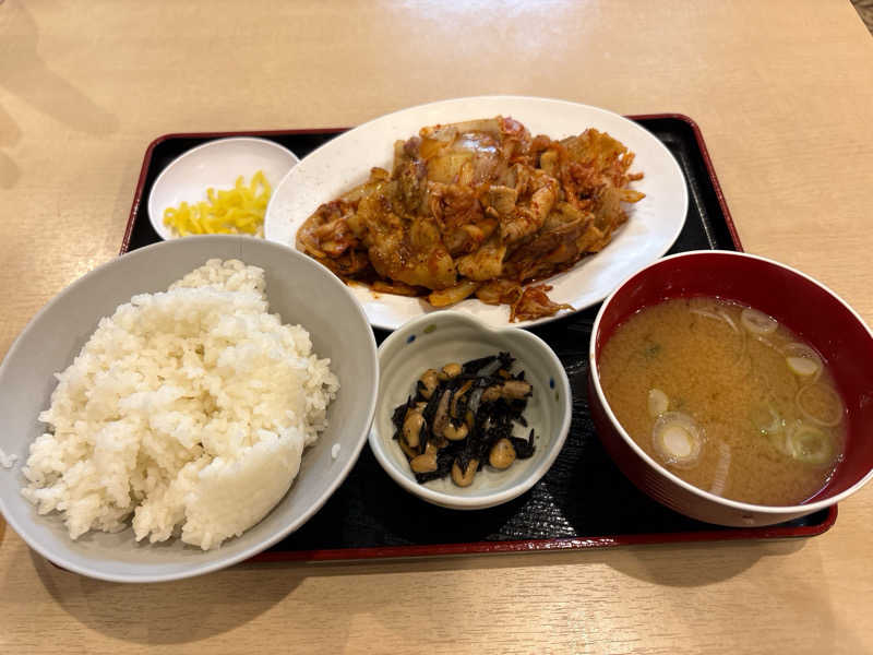 豚肉ジューシー。キムチの辛さがサウナ後の身体に染み渡る。