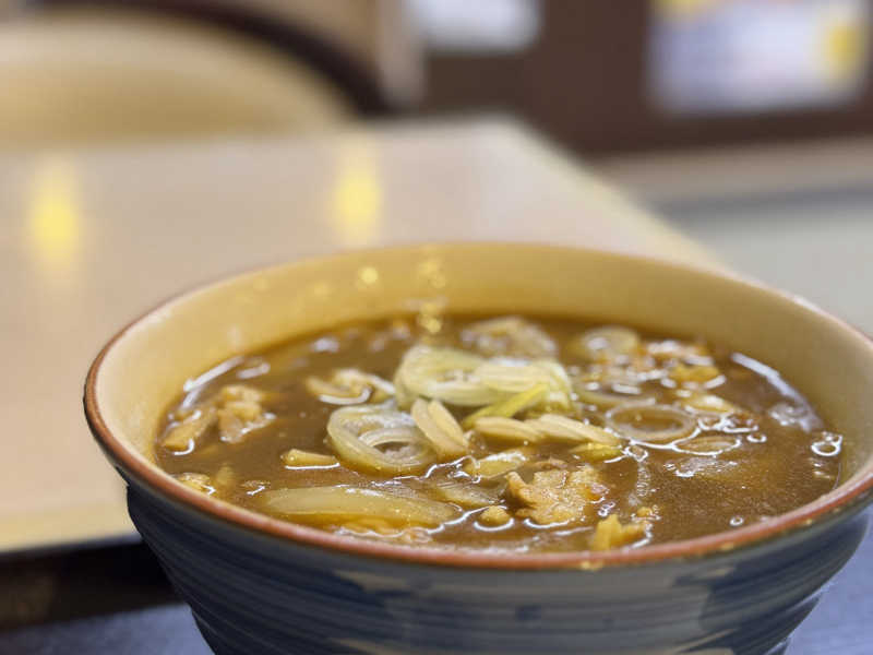 スパイスが効き、出汁の旨みもある。カレーうどんはもう発明だと思う。サ活にもばっちり。