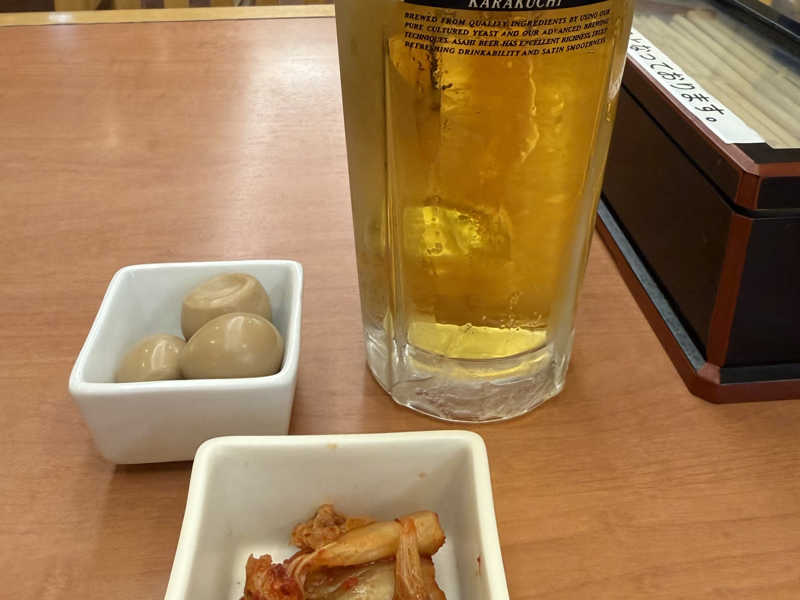 ビール、刺身、つまみで980円のセット、お得だわー!