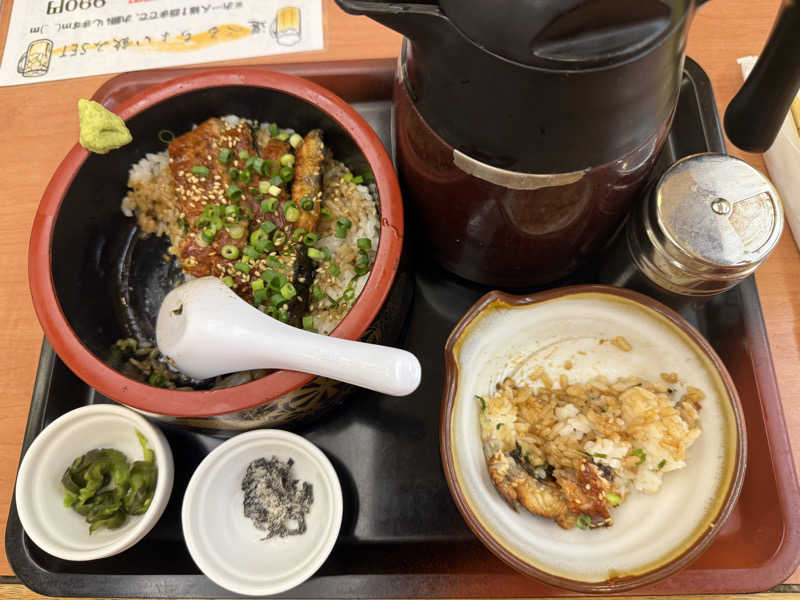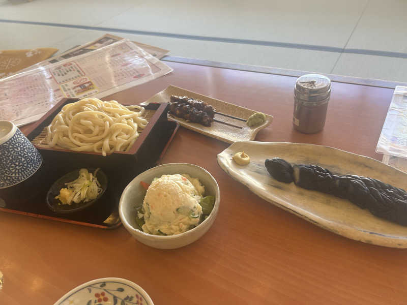 うどん、茄子、ポテトサラダ、うなぎの肝串、チキン南蛮(未着)、オロポ(写真外) 全部美味しかった!