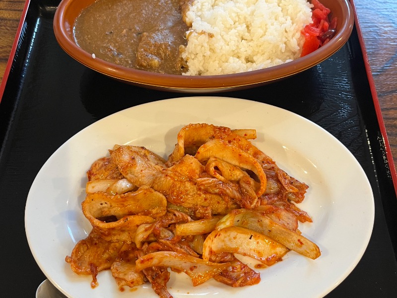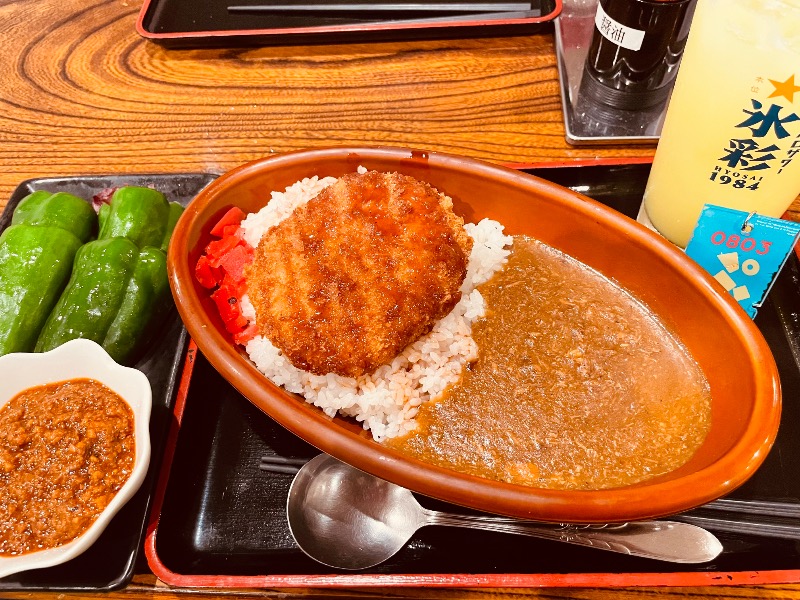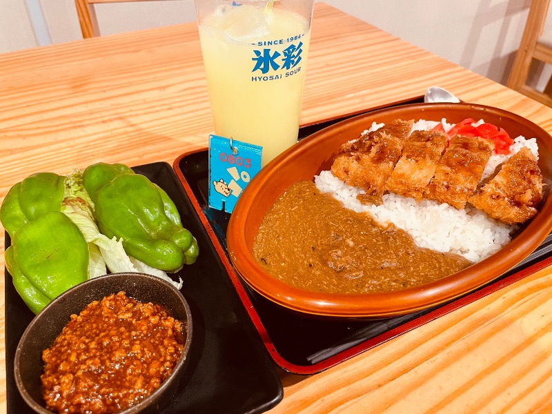 🍛とんかつブースト😋ぱりぱりピーマン🫑の辛味噌肉も美味しかった。