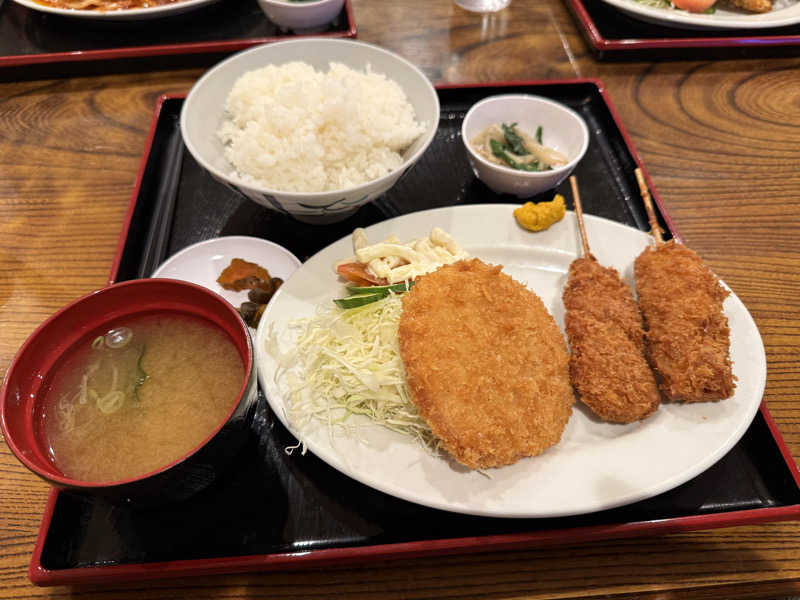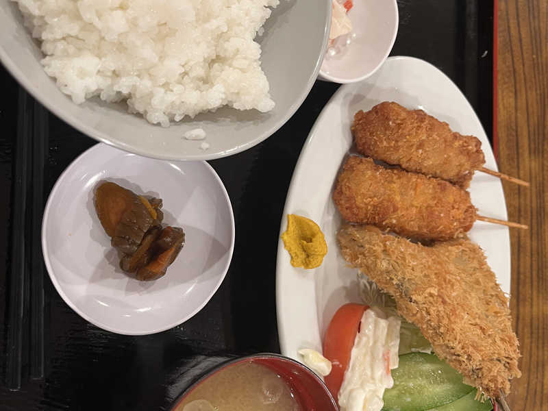 串カツ、ハムカツ、アジフライ、コロッケから2種選択という究極の選択😭今回は串カツアジフライで✨
