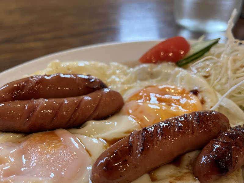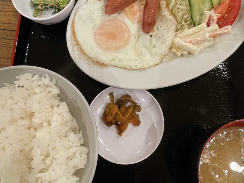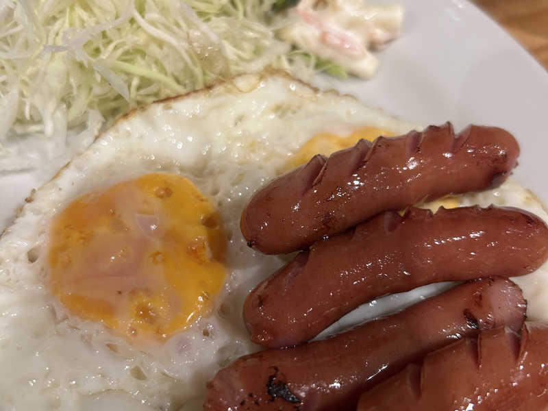 朝ハム定食終わっちゃったので。こっちだと赤ウインナーでないことを知る。