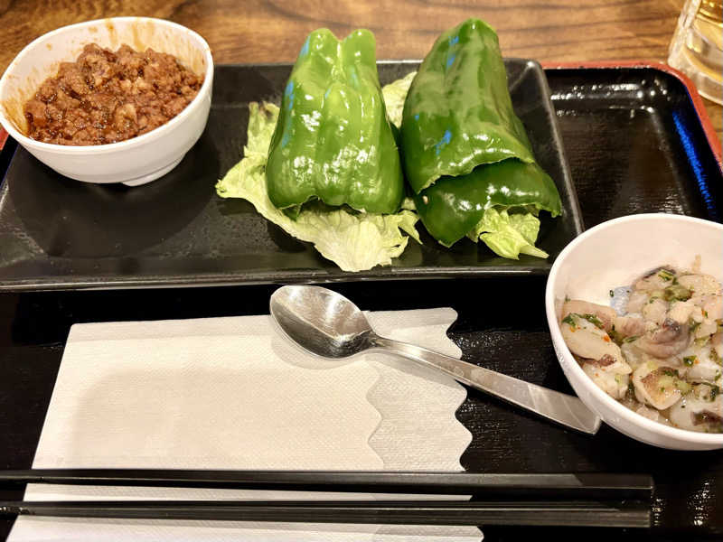 ニューウイングでご一緒した方オススメのぱりぱりピーマンはめちゃ美味しい😋燻製カレーもめちゃウマ‼️最高
