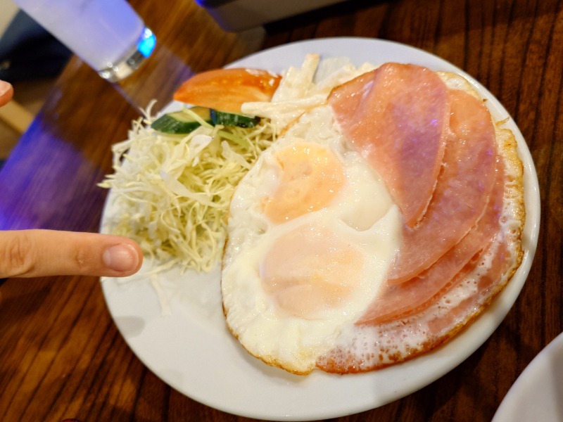 自分も毎日朝食にハムエッグ作ってるんですが、ここのハムエッグは美味すぎる!!