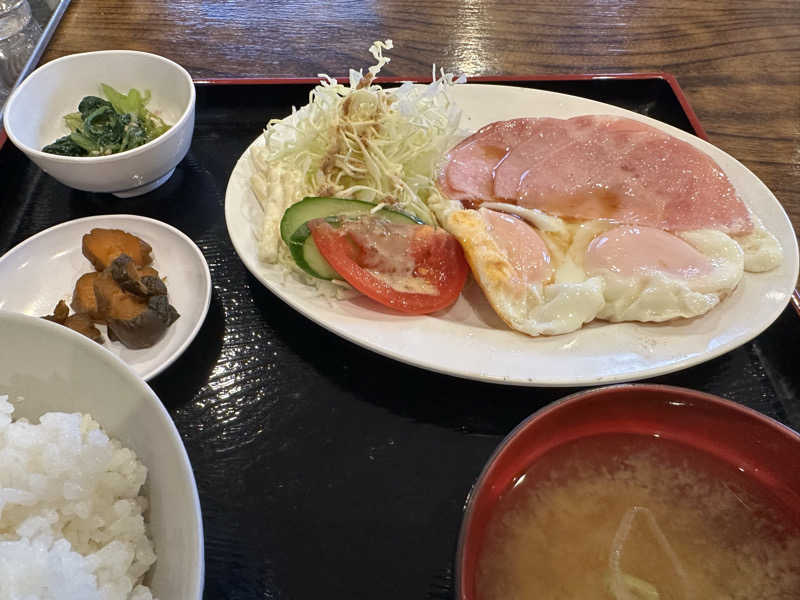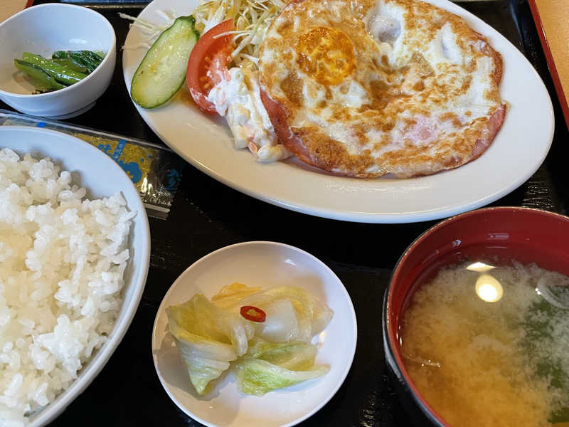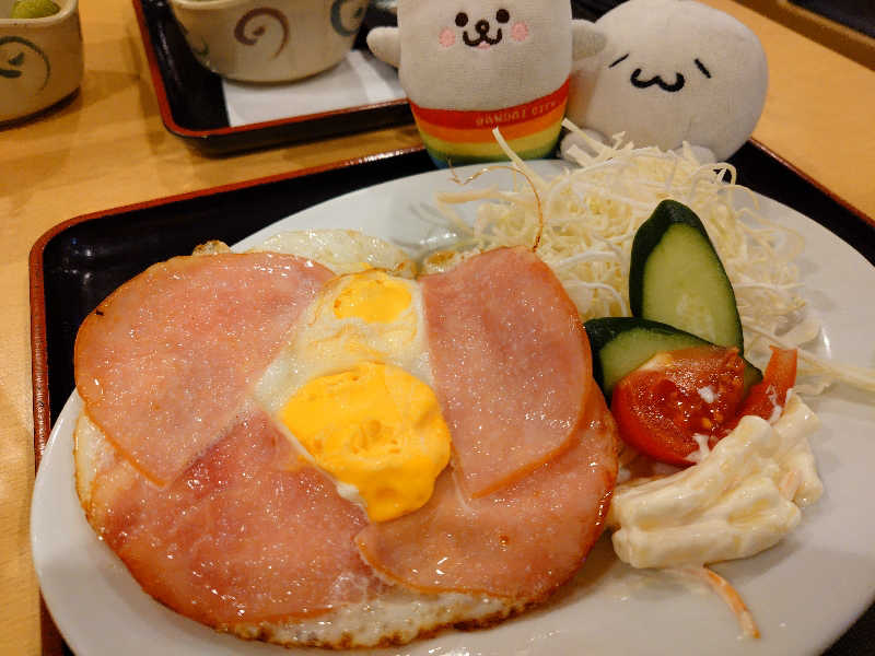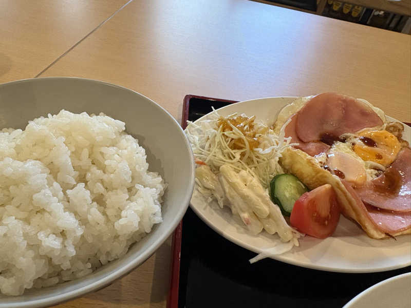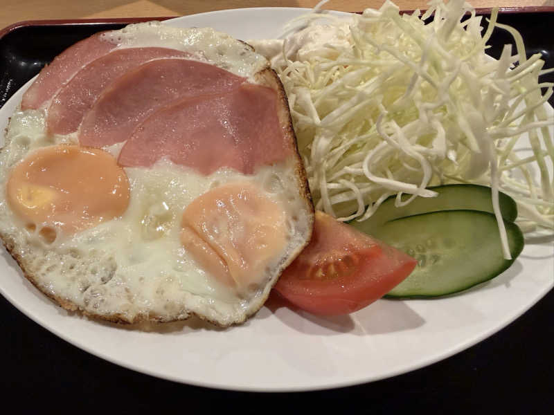 ハムエッグ500円でお得!(ライスは別。 さらにすごい美味しかった😍