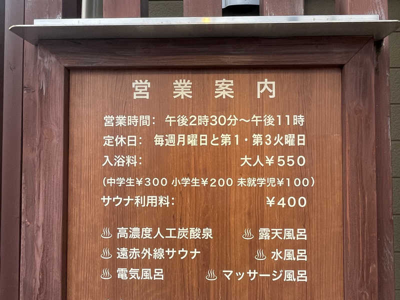 サウナも100℃近く本格派、お風呂の種類も多い(炭酸泉、電気風呂など)全体的に清潔感もあり、とても良いと思いました