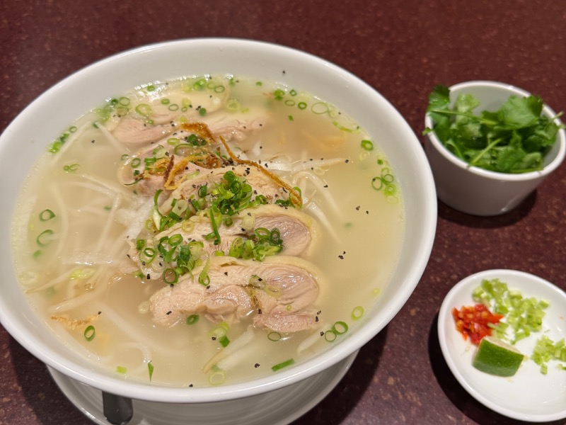 鶏のダシが効いていて、美味しい。 あっさりとしたスープ。 パクチー、唐辛子、ライムが薬味。