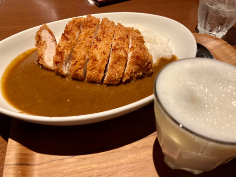 火傷しそうにあつあつなカツ!辛さ絶妙!スッキリ甘さのバナナラッシー相性ばっちし☆アボカドサラダ追加。