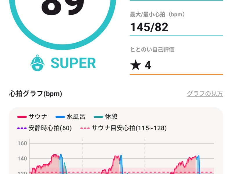 今日はちょっと温度まろやかだったでしょうか。15分の3セット。初めてととのい値89行きました。結構サ室もにぎやかでした。いかったー