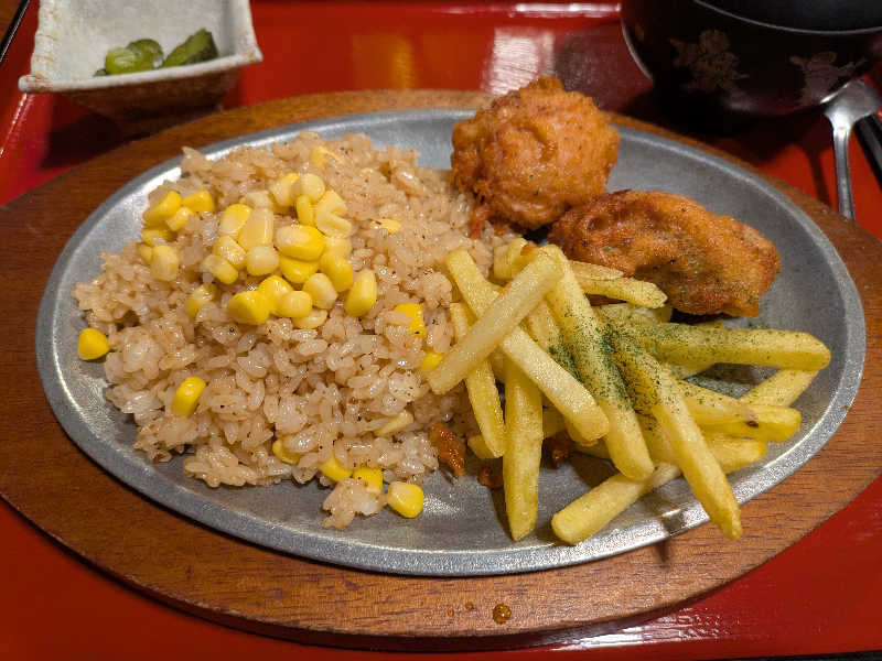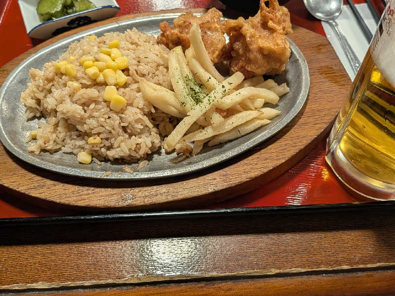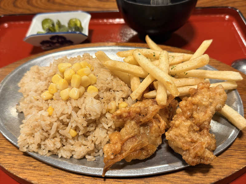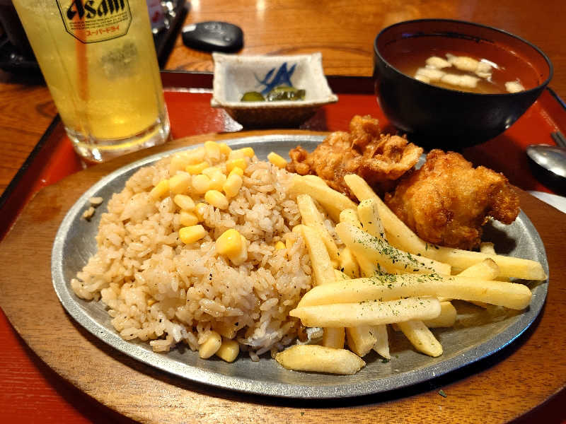 サウナ後に嬉しいメニュー✨ 唐揚げもサクサクで美味しかった😋