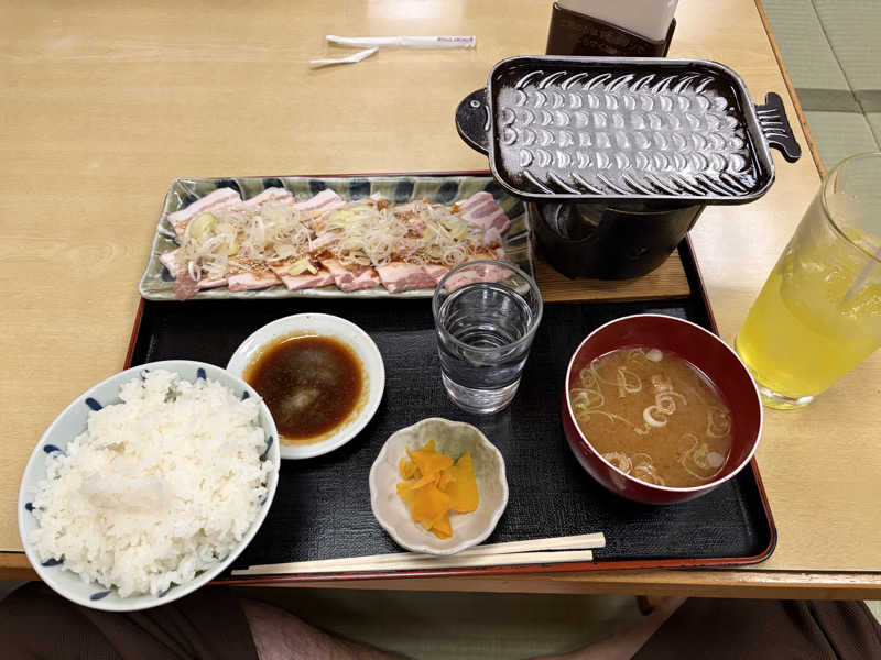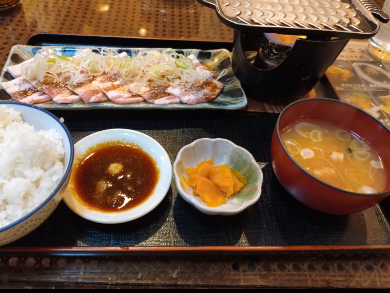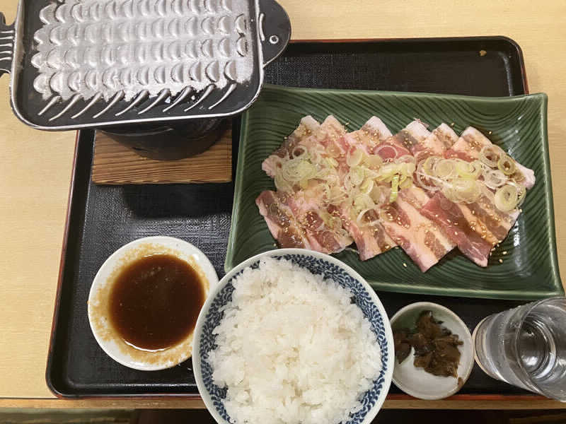定番の豚バラ鉄板焼きを単品に御飯