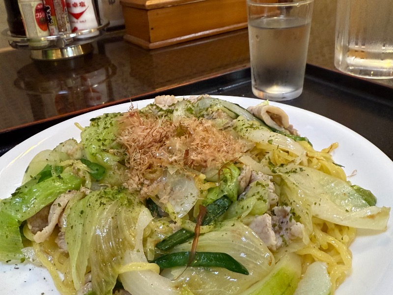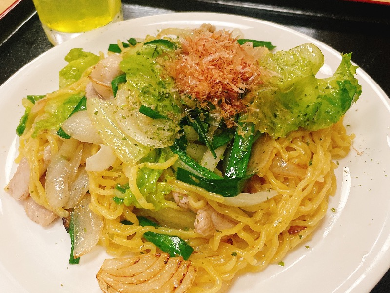 夏の味覚。まさに「塩」焼きそば。濃いめの味付けがメガレモンハイを進ませる。