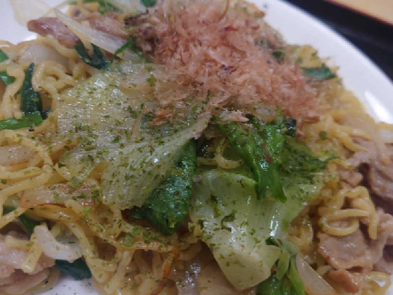 祝!存続! 生姜焼きとメンチカツについていたマヨを焼きそばに絡めて食うと至福