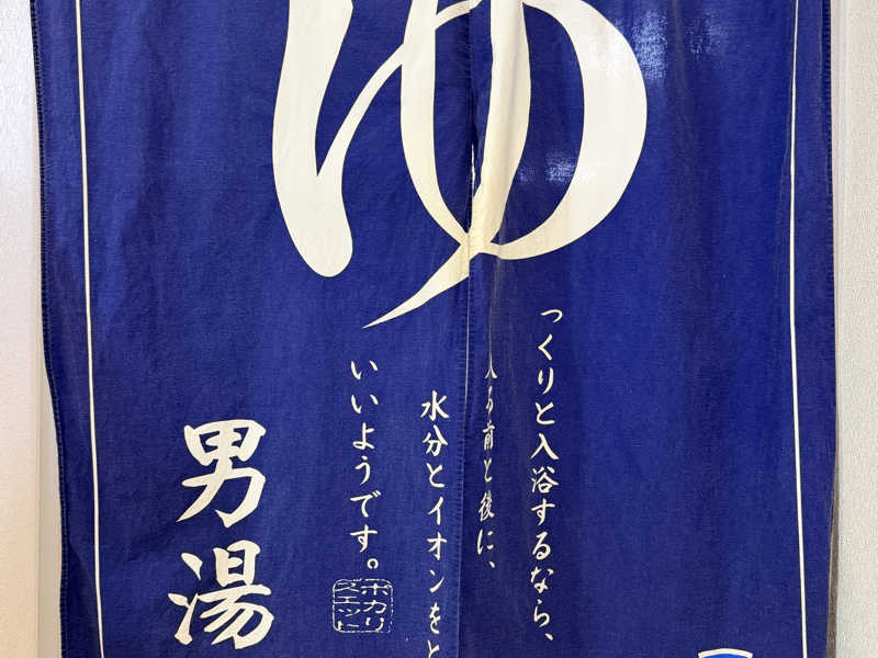 サウナ専用リストキーとタオルセット大小を受け取り、初めて見るポカリの暖簾を潜る