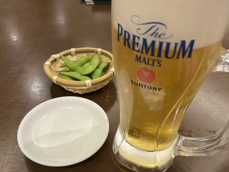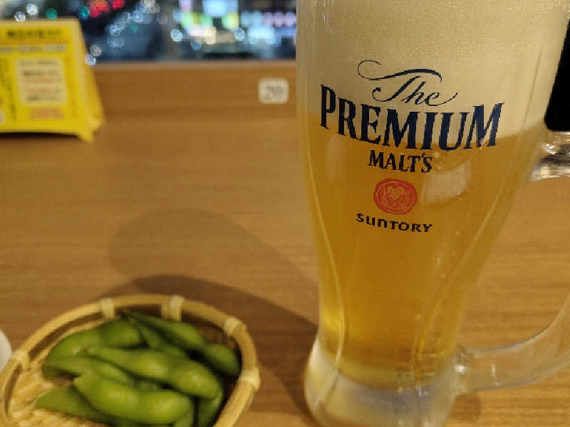 錦糸町の駅前を見下ろしながら飲む昼ビールは格別。