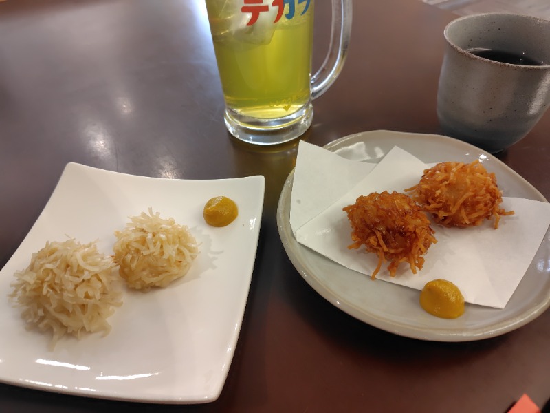 海老しゅうまいとイカしゅうまいの蒸し焼売と揚げ焼売。withデカラ。