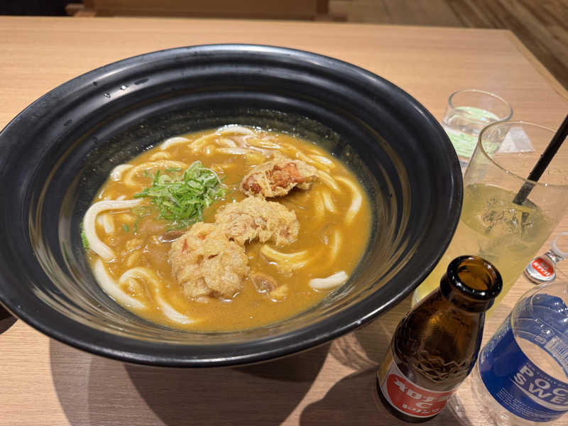 でっっかいどんぶりで来るのよ。うどんは太くて柔らかめ。