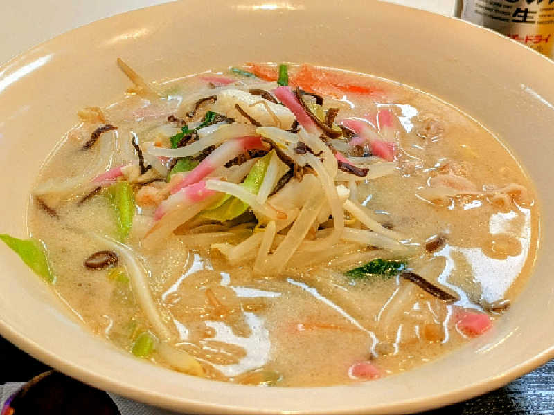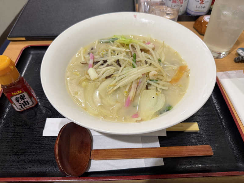 名物メニューだが今になって初めて頂きます🍜 スープが濃い目、塩味が効いてて美味い😋