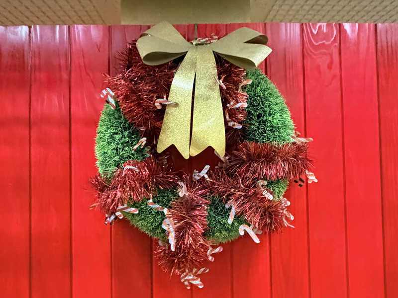 あ、帰り際に気づいたのだが、クリスマスリースが飾られてました!👍