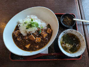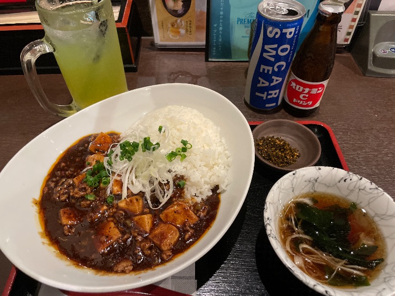 サウナドリンク(オロポ)と。麻婆は昨日から食べたかった。食べたいものがあり、それが食べられる幸せ。