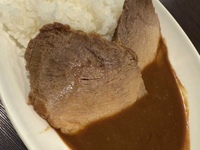 チャーシューとカレーの欲張りサウナ飯 スパイスの効いたカレーにほろほろのチャーシューがよく合いました