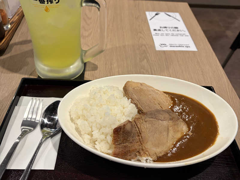 1250円 チャーシューが分厚くて食べ応えアリ ルゥも程よい辛さでサウナあとには最高