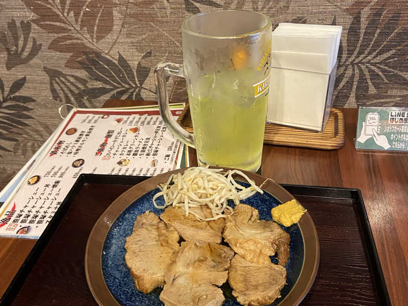 味の染みた美味しいチャーシュー。オロポをがぶ飲み。
