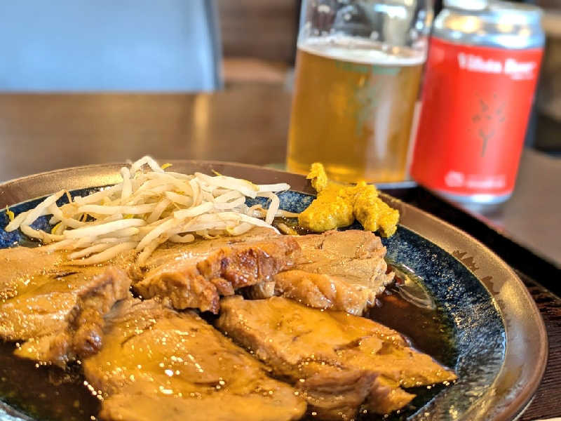 醤油とお酒のキレがある柔らかチャーシューとクラフトビールのお得なセット。サウナ後に染みました。