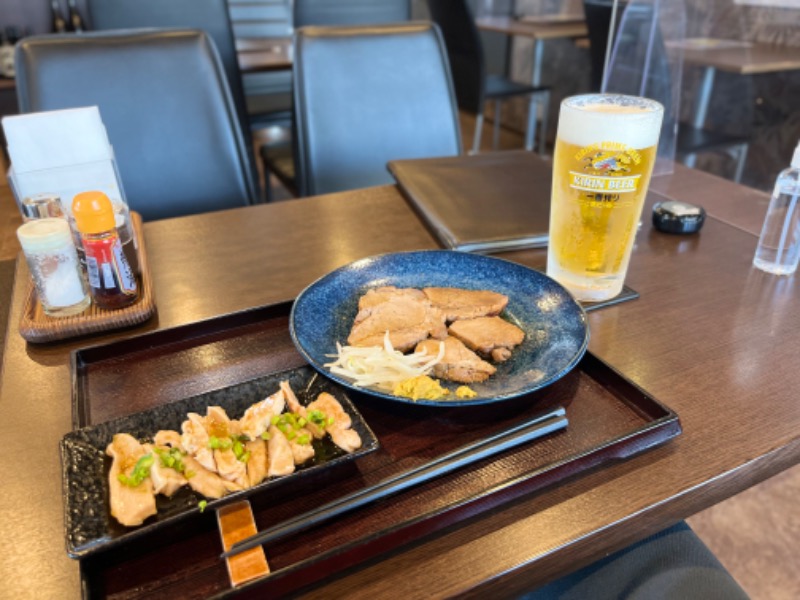 薬味で味変も出来る塩チャーシューに風味豊かなオリジナルクラフトビール。 最高!!