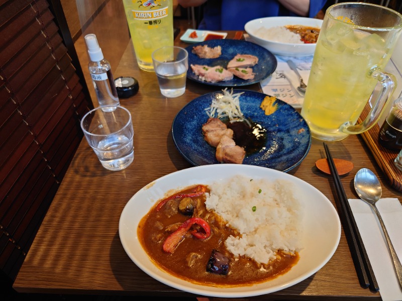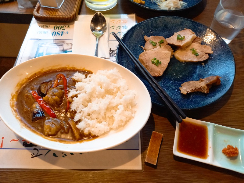 チャーシューはとても柔らかい😋 カレーも牛すじのほぐれ具合といい辛さもちょうどいい ご馳走さん🎵