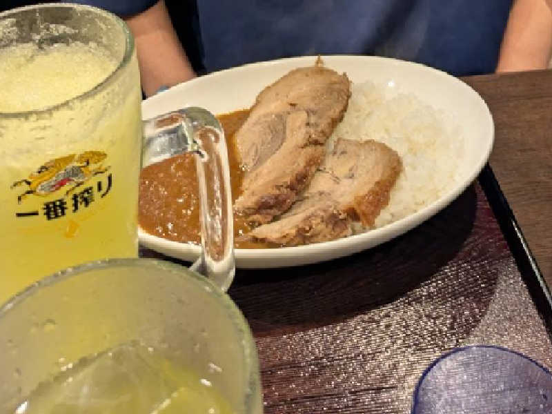 チャーシューが分厚くプリプリでした。 カレーもピリ辛で、フローズンオロポと愛称がよかったです