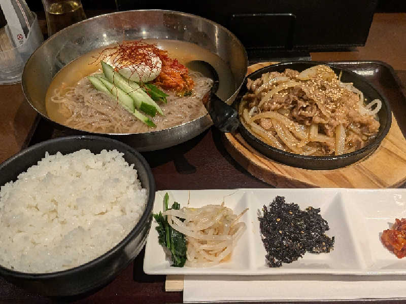 焼肉はコストコのプルコギに近い味でご飯が進む〜 冷麺は酢が合う〜