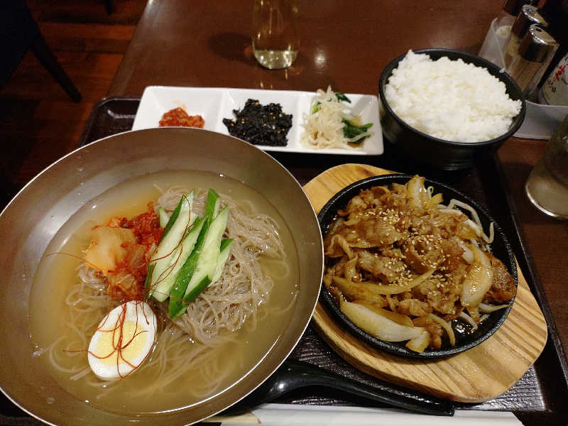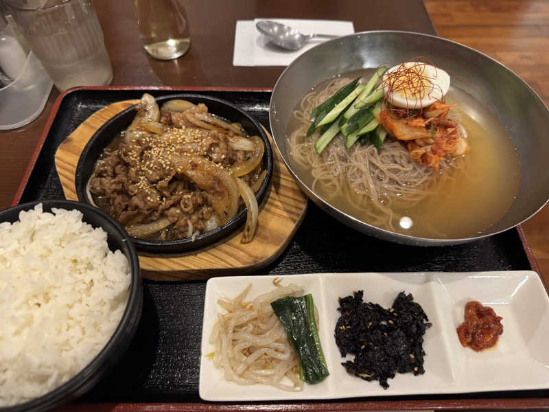 焼肉はコストコのプルコギに近い味でご飯が進む〜 冷麺は酢が合う〜