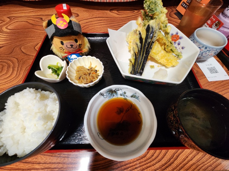 💴1280 天ぷら美味しかった😍 最後に食べる天ぷらは、もちろんエビ🦐です😁