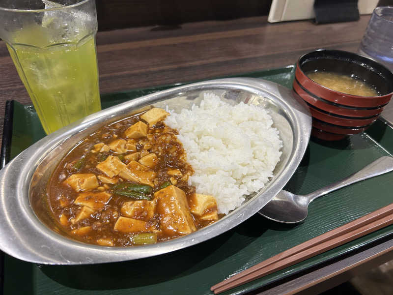 しっかり辛い麻婆豆腐にうどん。いや〜辛かった。美味かった。