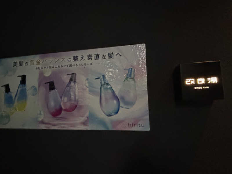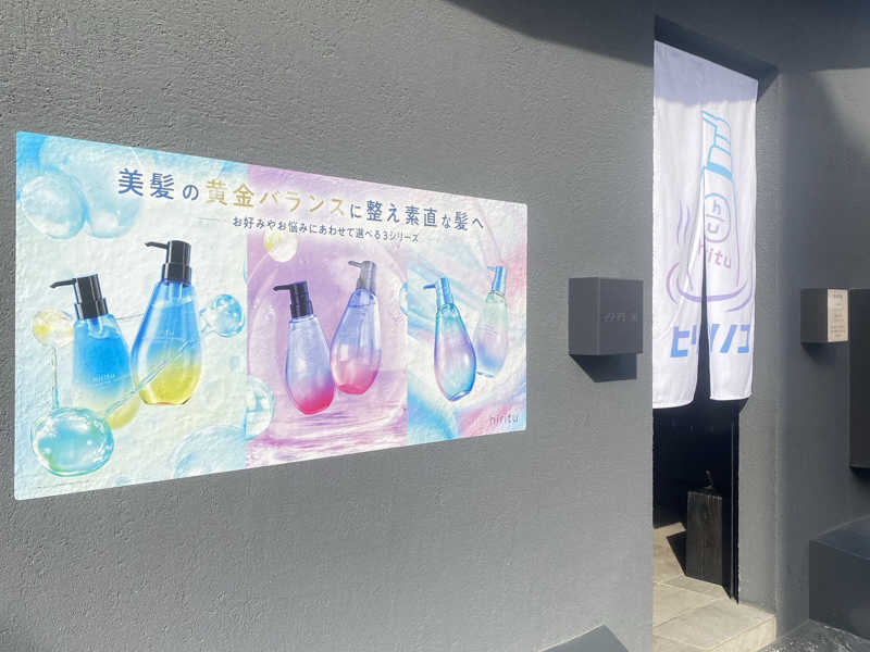 ヒリツのシャンプー・トリートメントとヘアミルク、艶スプレー?みたいなのが置いてあります。いい香りだった〜🍐