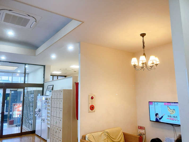 あとこの浴室のタイル、よく見ると床と1段上がった浴槽周りで少し違うものが使われていて、床のほうはマットでうっすら青みがかってるんだけど浴槽周りは玉虫色の貝殻みたいな光沢があるんですよね。こういうさりげないデザインのこだわりを垣間見られるのも温浴施設巡りの醍醐味です。
