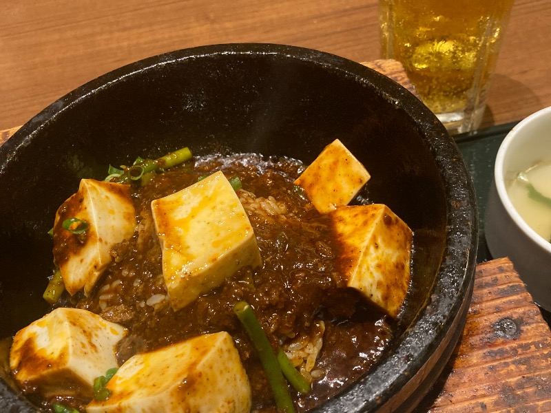 石焼きで最後までアチアチ🪨🔥 ピリ辛でビールによく合う〜🍺🤗